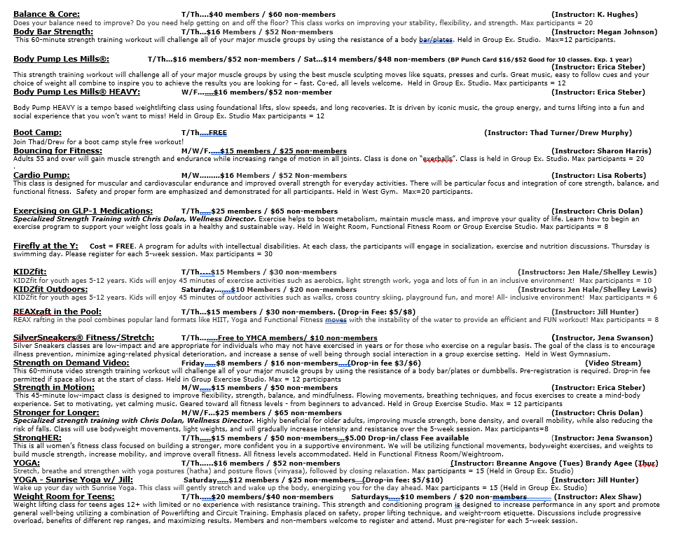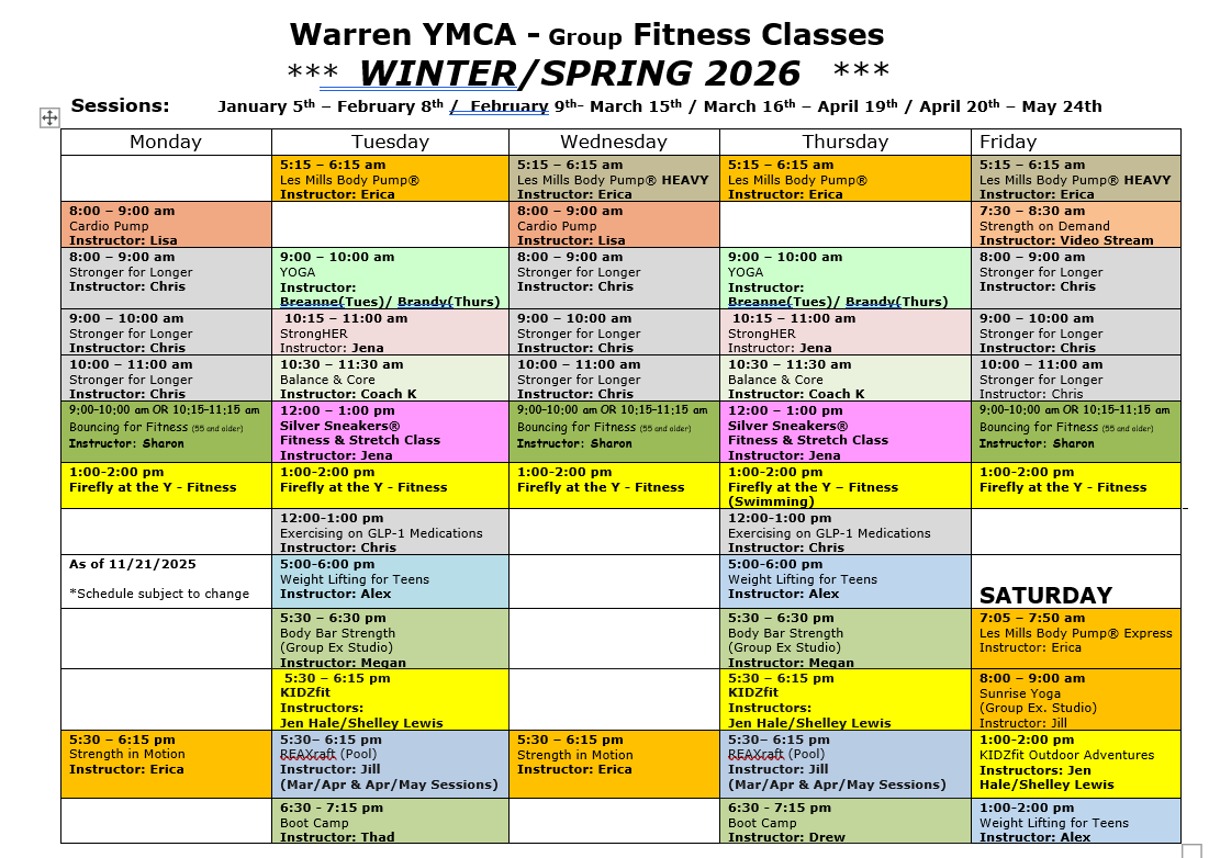 Group Fitness Schedule